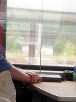 Die Reise hatte ja schon so „Abenteuerlich“ begonnen und ich war dann in meinem 2ten RE eingestiegen und 2 Stationen weit gefahren, als ein älterer Herr das Abteil betrat und sich einen Platz im Gang gegenüber aussuchte. Zuerst packte er ein kleines Kästchen aus und setzte sich ein paar große Kopfhörer auf . Wie sich dann herausstelte, war dieses Kästchen nichts anderes als ein ‚älteres Radio‘ mit Stabantenne, was natürlich auch noch seinen Platz an der Fensterscheibe benötigte.